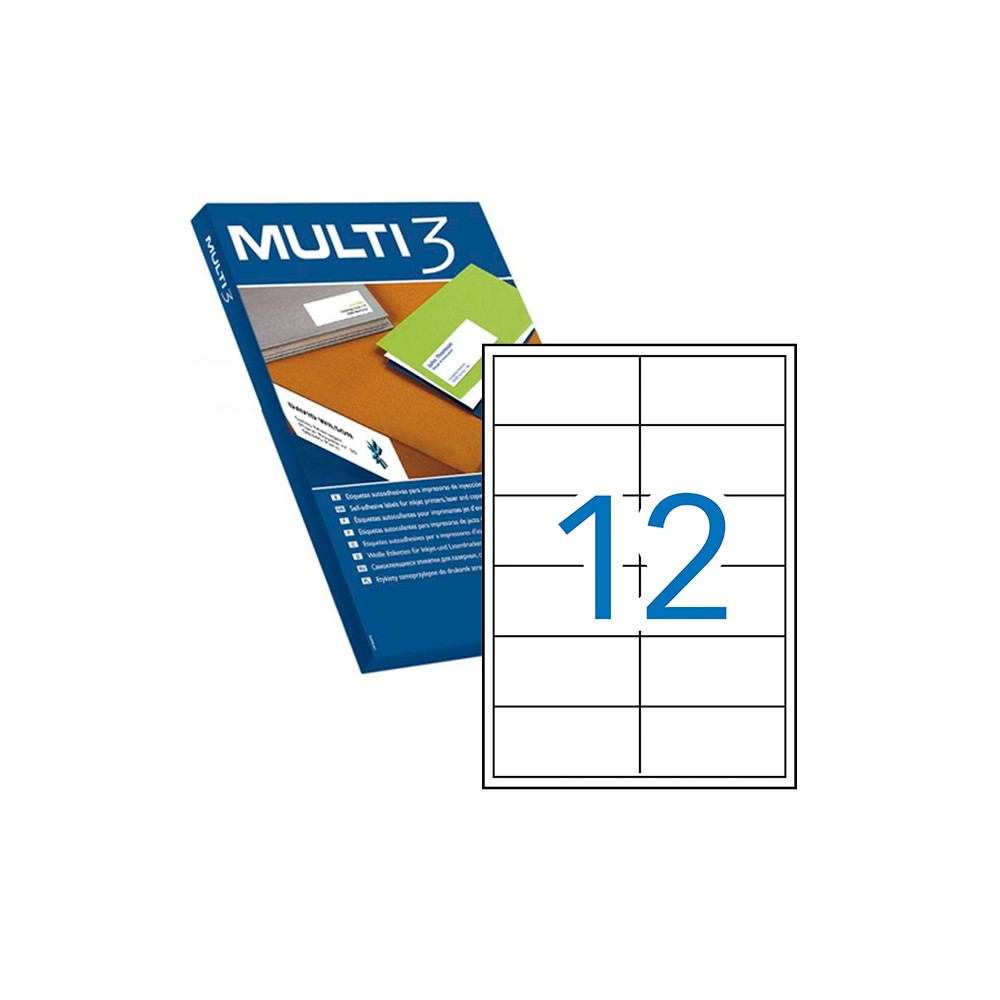 Multi3 Pack de 6.000 Etiquetas Blancas Cantos Rectos Tamaño 97.0X42.4mm con Adhesivo Permanente para Multiples Usos