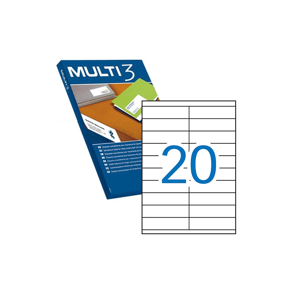 Multi3 Pack de 10.000 Etiquetas Blancas Cantos Rectos Tamaño 105.0X29.0mm con Adhesivo Permanente para Multiples Usos
