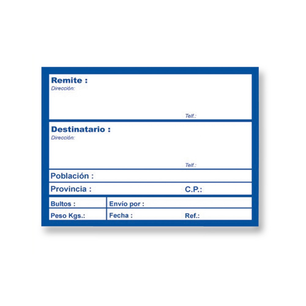 - Etiquetas adhesivas con texto preimpreso para rellenar los datos de envío.