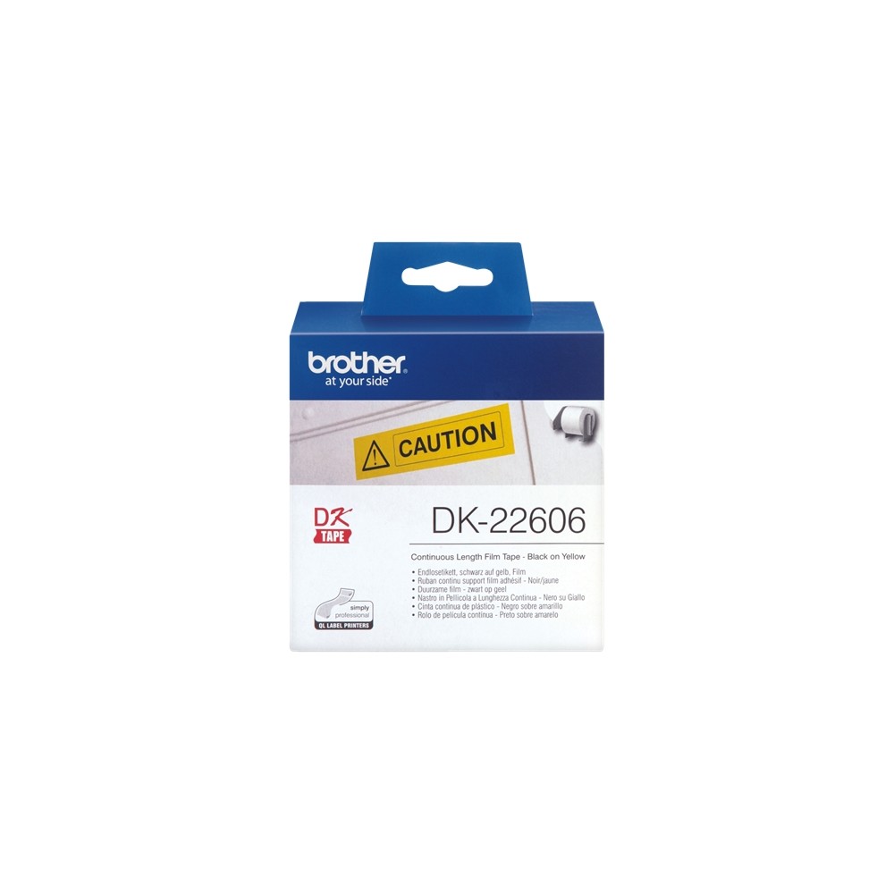 Brother DK22606 - Etiquetas Originales de Tamaño personalizado - Ancho 62mm x 15,24 metros - Texto negro sobre fondo amarillo
