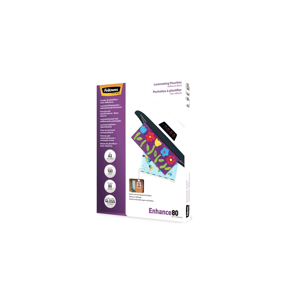Fellowes Pack de 100 Fundas AutoAdhesivas para Plastificar Brillo A3 - 80 Micras - Alta Calidad - Transparente