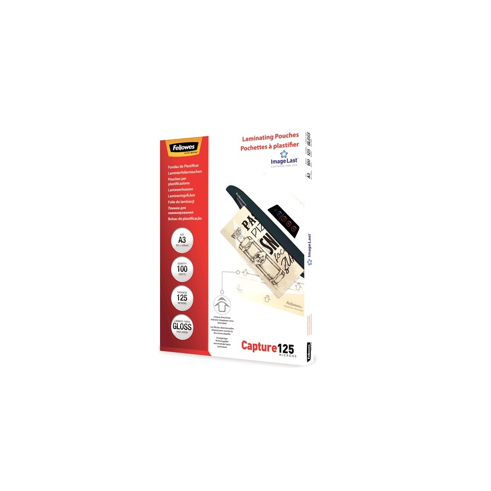 Fellowes Pack de 100 Fundas para Plastificar Brillo A3 - 125 Micras - Alta Calidad - Transparente