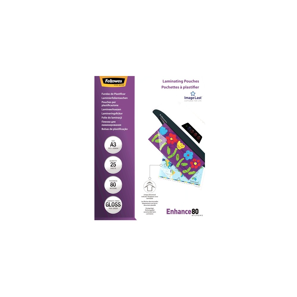 Fellowes Pack de 25 Fundas para Plastificar Brillo A3 - 80 Micras - Alta Calidad - Transparente
