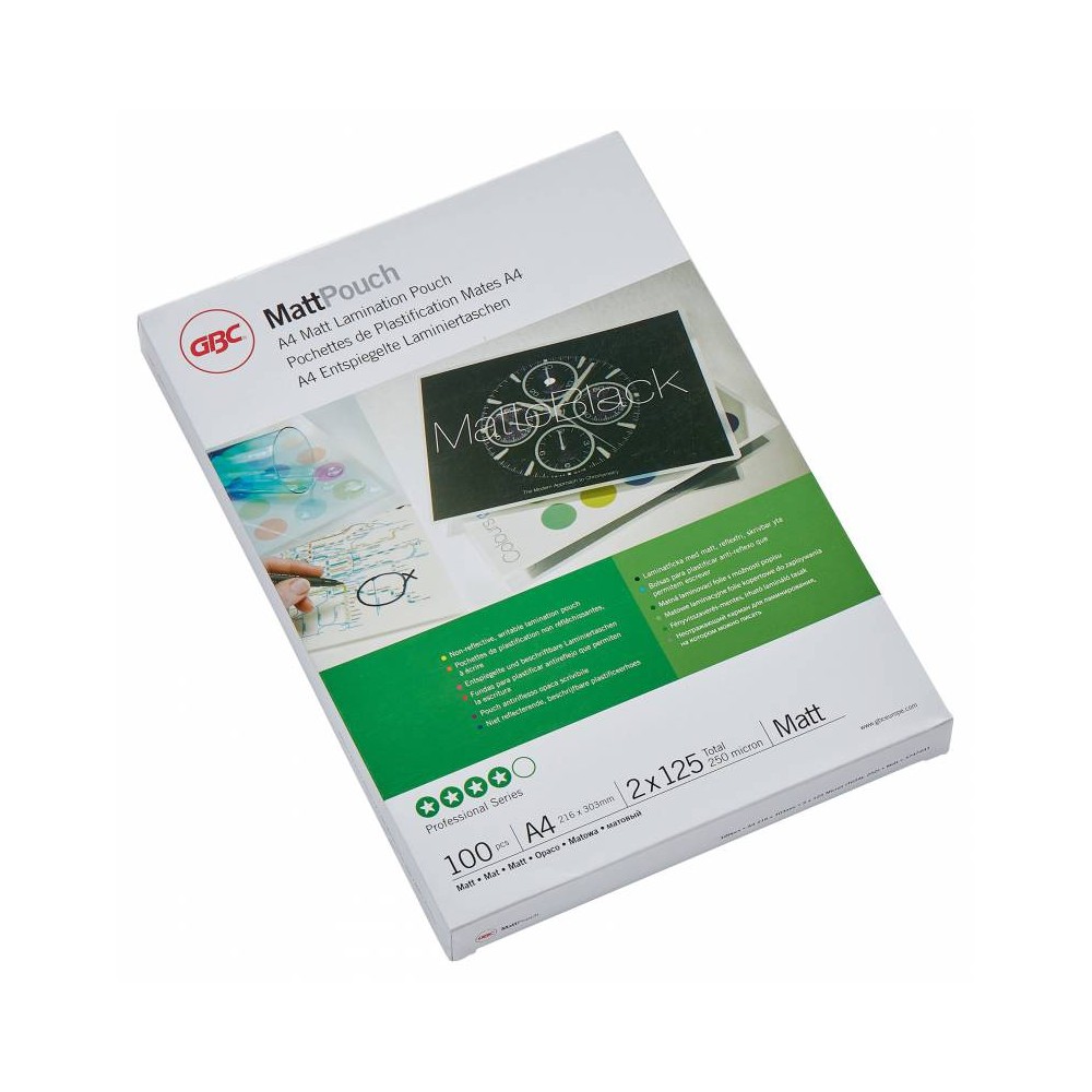 GBC Carteras Plastificacion Mate - A4, 2x125 Micras - Resistente Al Agua - Acabado Mate - Tamaño 216x303mm - Superficie Escribib
