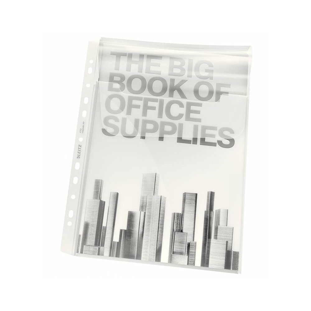 La funda fuelle Premium de Leitz con solapa expansible es un producto de alta calidad diseñado para proporcionar una mayor capacidad de almacenamiento. Fabricada con una resistente lámina de PP transparente de 0,18 mm, esta funda cuenta con una solapa que permite expandir su capacidad.