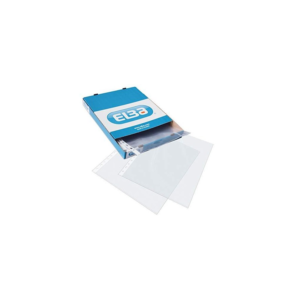 Elba Caja de 100 Fundas Multitaladro 90 Micras - Formato Folio - 16 Perforaciones - Acabado Piel de Naranja Ver más grande