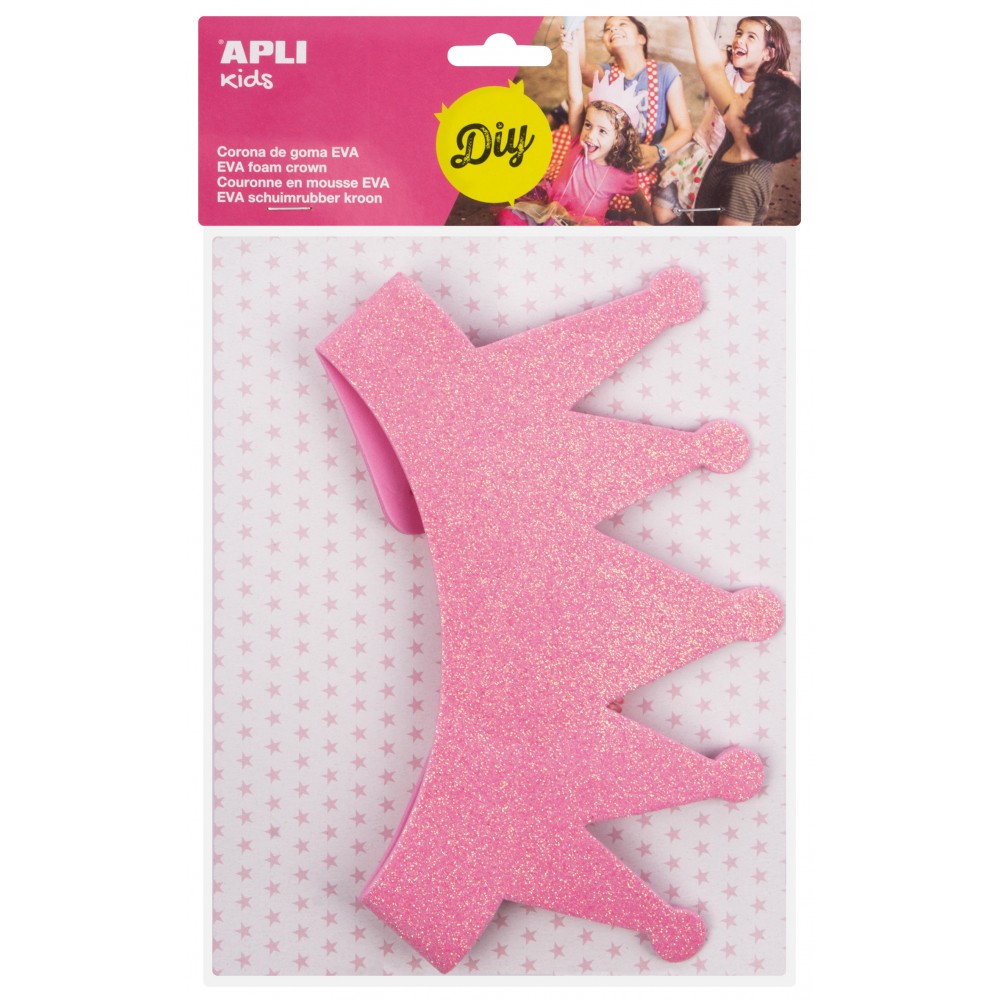 Apli Corona de Goma Eva Rosa con Purpurina - Cable Elastico Ajustable - Personalizable con Formas de Goma Eva, Fieltro, Pegatina