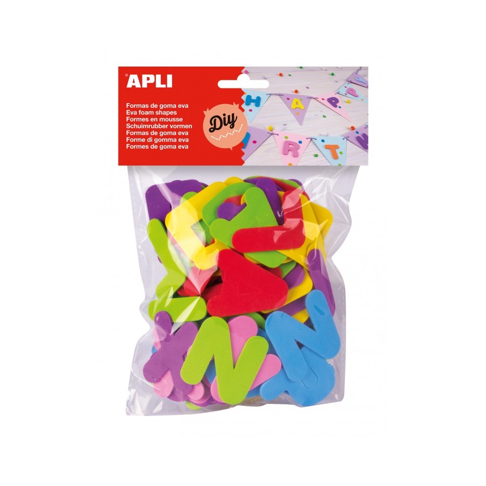 Apli Formas de Letras Goma Eva - 104 Formas - Altura 50mm Aprox. - Material Suave y Seguro - Colores Surtidos