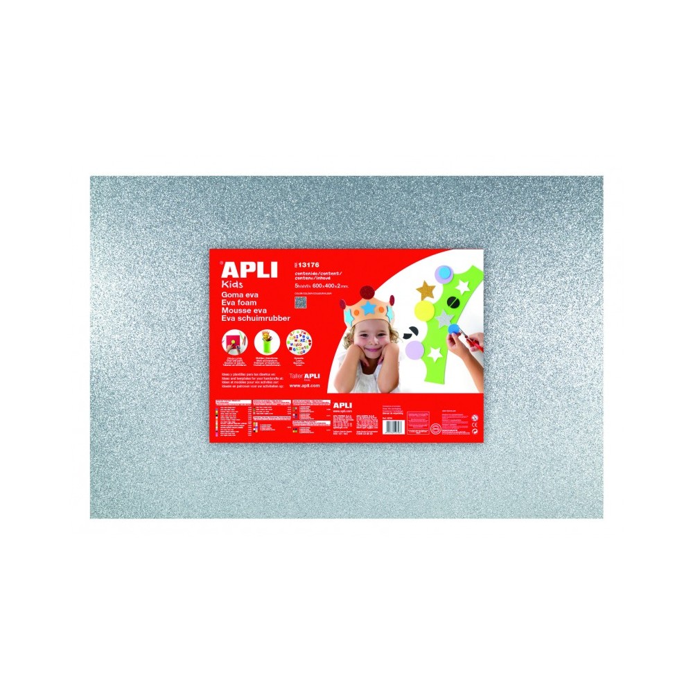 Apli Pack de 3 Goma Eva Purpurina Plata 600 x 400 mm - Grosor 2 mm - Impermeable - Moldeable al Calor - Color Plata