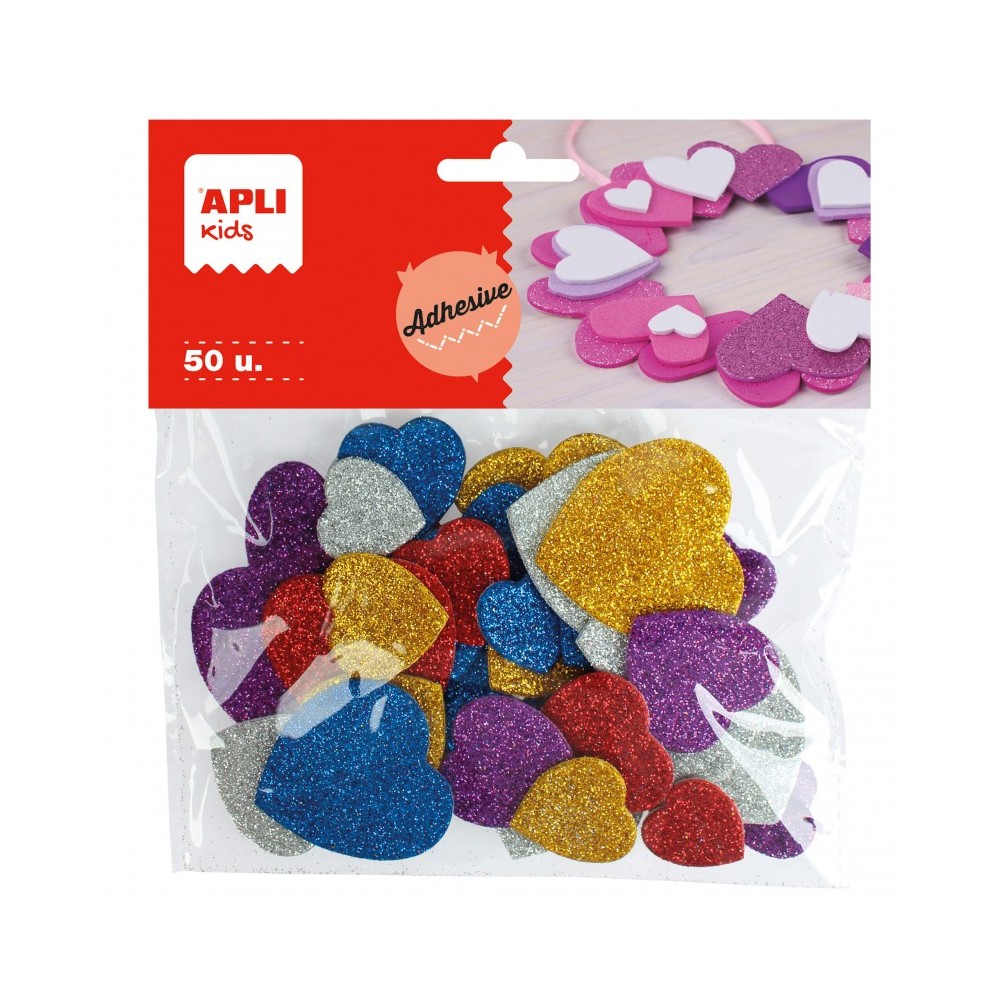 Apli Formas de Corazones Adhesivas de Goma Eva - 50 Formas - Medidas Surtidas - Material Suave y Seguro - Colores Surtidos Purpu