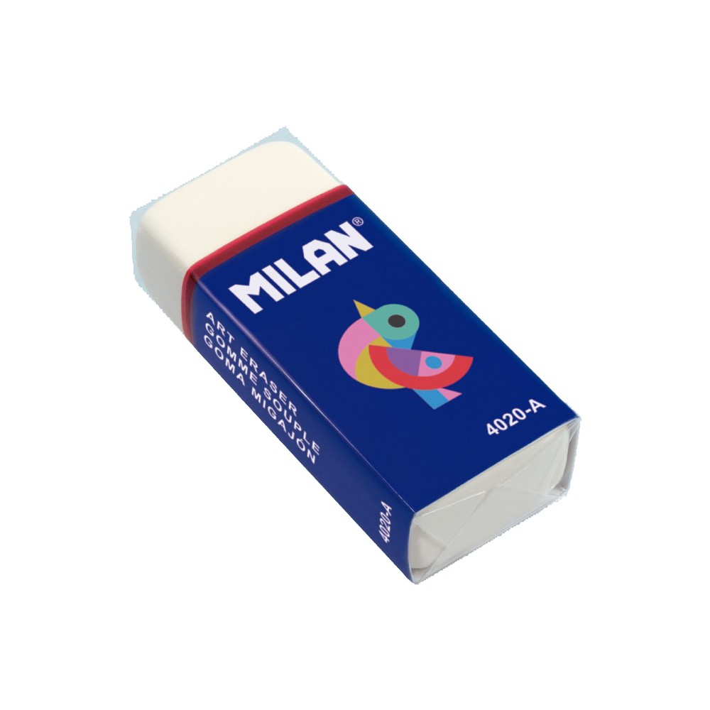 Milan 4020A Goma de Borrar Rectangular - Miga de Pan - Suave - Caucho Sintetico - Faja de Carton Azul - Dibujos Surtidos - Color