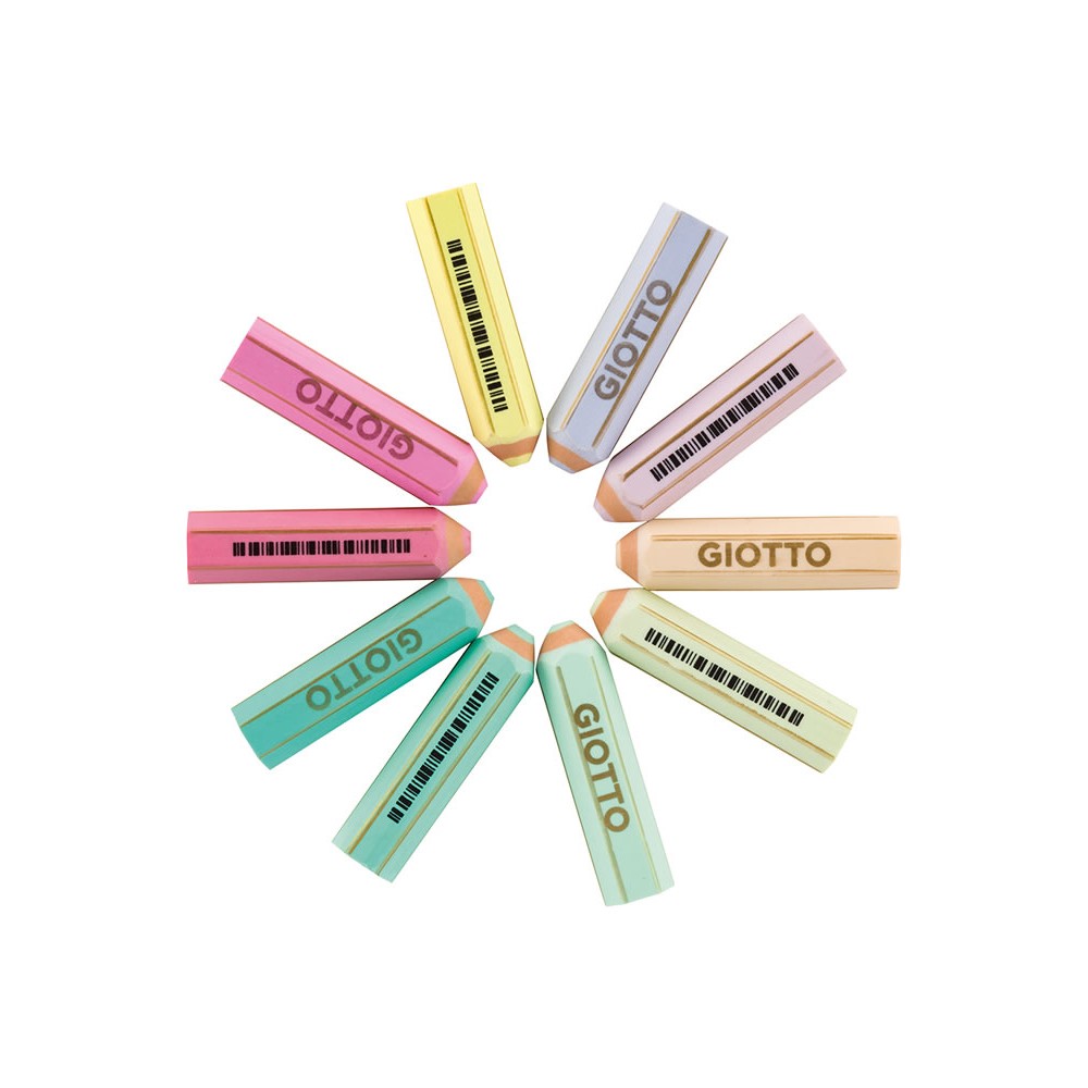 Giotto Happy Gomma Expositor de 40 Gomas de Borrar - Forma de Lapiz - Para Borrar Grafito - 10 Colores Pastel