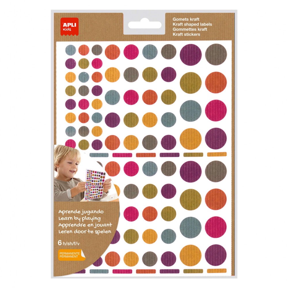 Apli Gomets Redondos Adhesivo Permanente - Ø 10mm, Ø 14mm y Ø 20mm - 624 Gomets por Bolsa - Desarrollo de Habilidades y Creativi