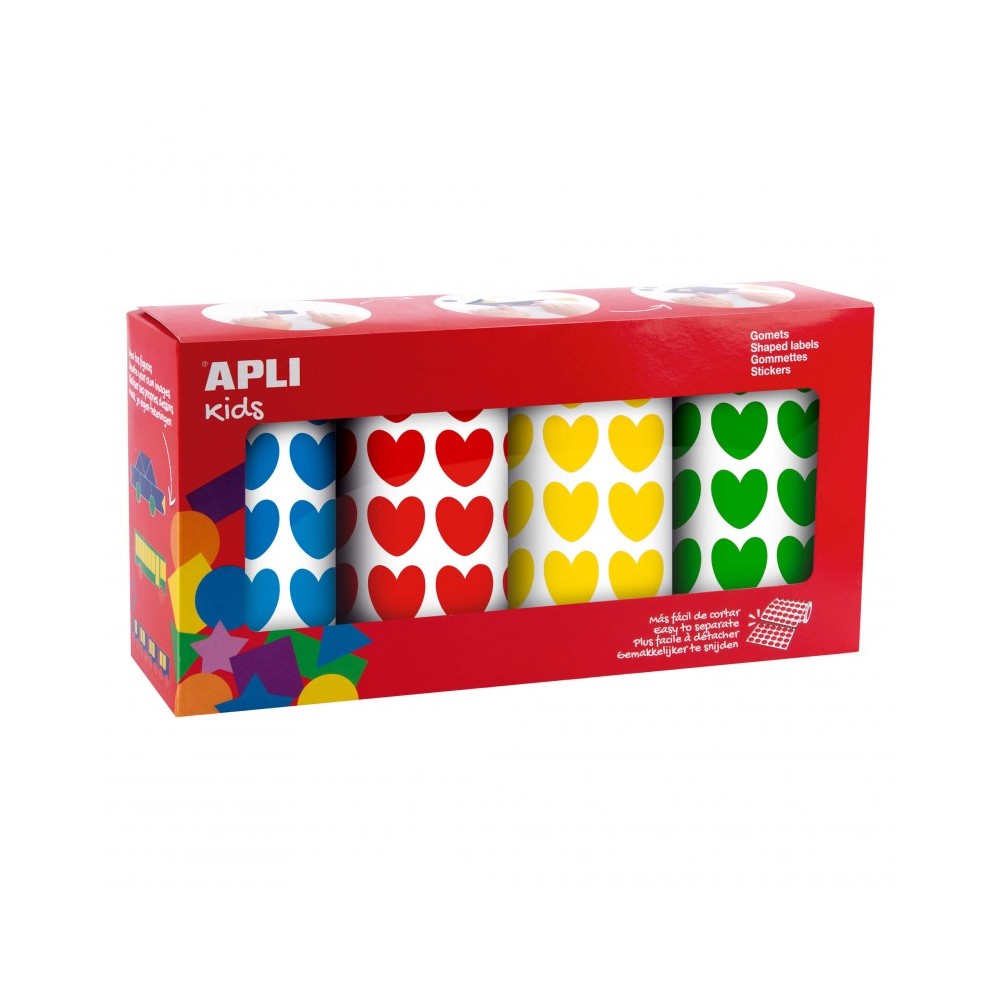 Apli Kids Pack de 4 Rollos de Gomets Corazon - 7.080 Gomets en Total - Adhesivo Base Agua - Libre de Disolventes - Materiales 10