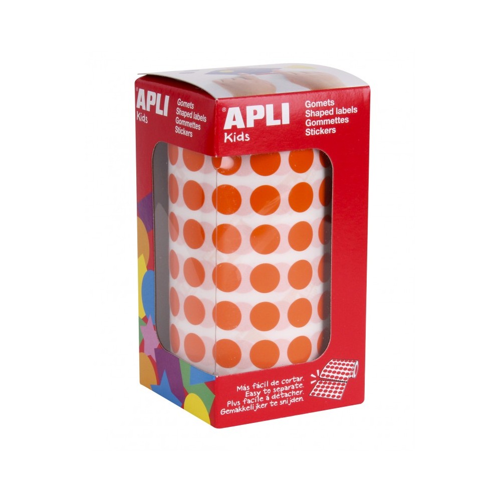 Apli Rollo de 5192 Gomets Redondos Naranjas - Tamaño Ø 10,5mm - 59 Hojas Pretroqueladas - Adhesivo Base Agua - Cumple Normas EN-