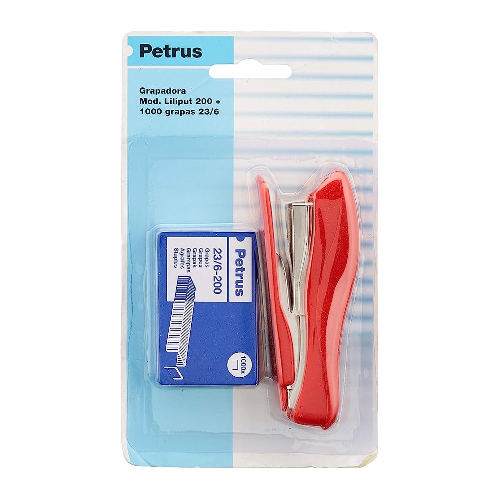 Petrus 200 Liliput Grapadora + 1 Caja grapas 23/6-200 - Hasta 12 Hojas - Grapas 23/6 - Grapado Cerrado y Clavado - Colores Surti