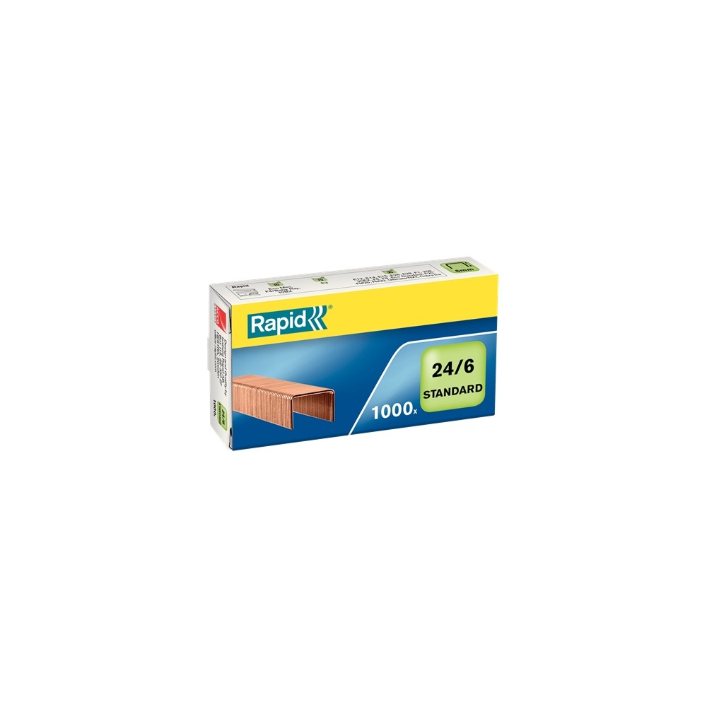 Rapid Confort Caja de 1000 Grapas 24/6 - Hasta 20 Hojas - Alambre Flexible Cobreado - Patilla de 6mm