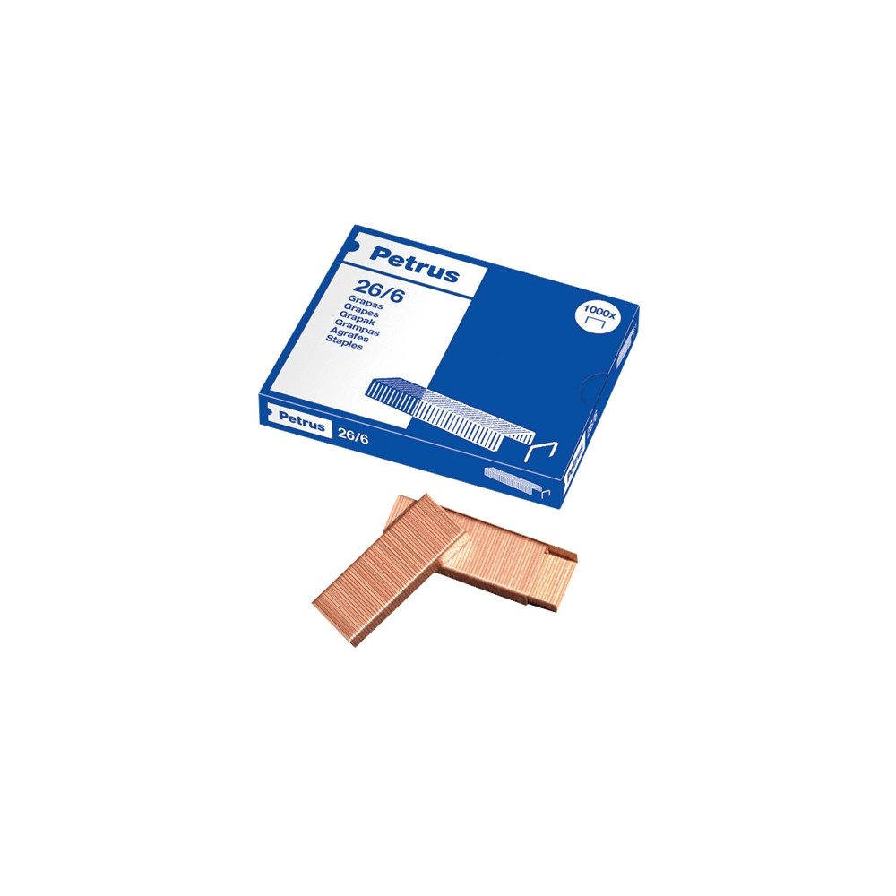 Petrus Caja de 1000 Grapas 26/6 Cobreadas - Hasta 30 Hojas - Patilla de 6mm