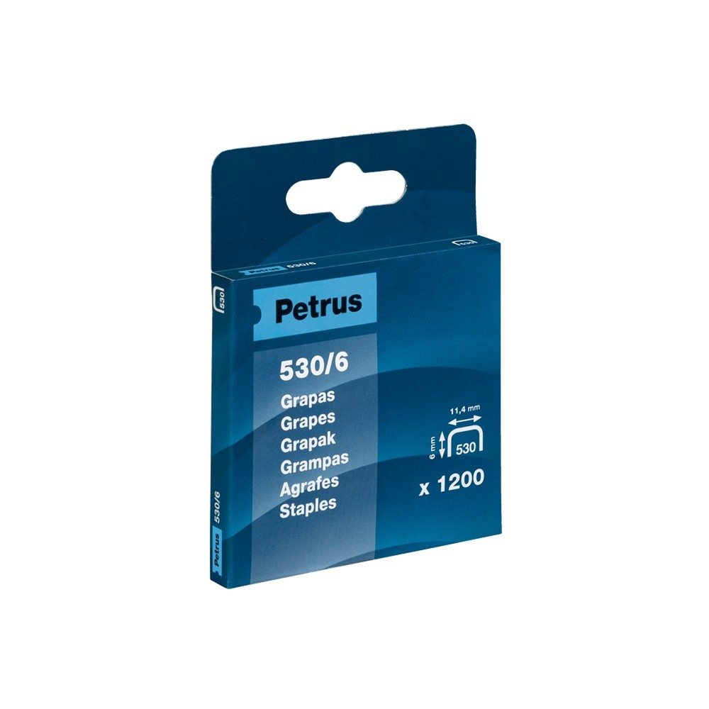 Petrus Caja de 1200 Grapas 530/6 Cobreadas para Clavadora - Patilla de 6mm