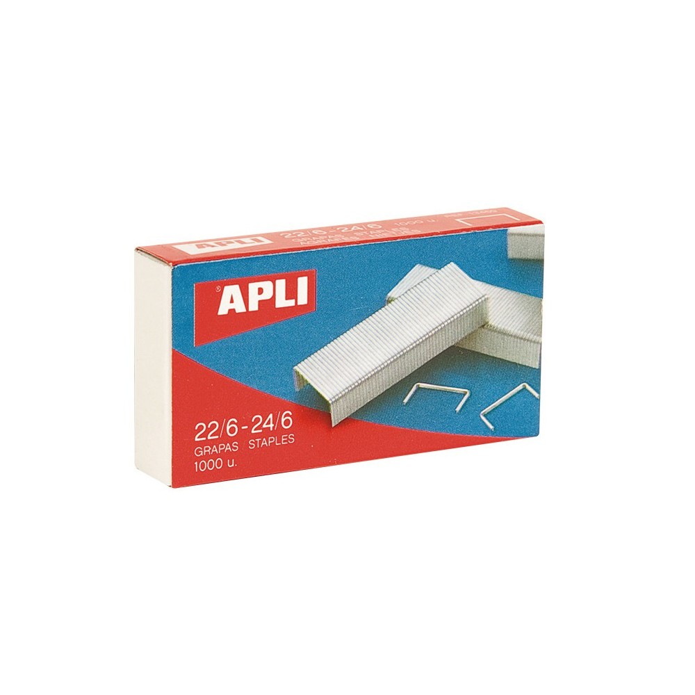Apli Grapas 22/6 - 24/6 Galvanizadas - Capacidad de Grapado Aprox 20 Hojas - Caja de 1000 Grapas