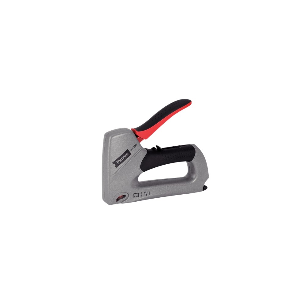 Petrus 295 Top Clavadora/Grapadora Metalica - Para Grapas 530/6 a 14mm y Pins Tipo 8 de 15mm - Ajuste de Potencia - Color Gris/N