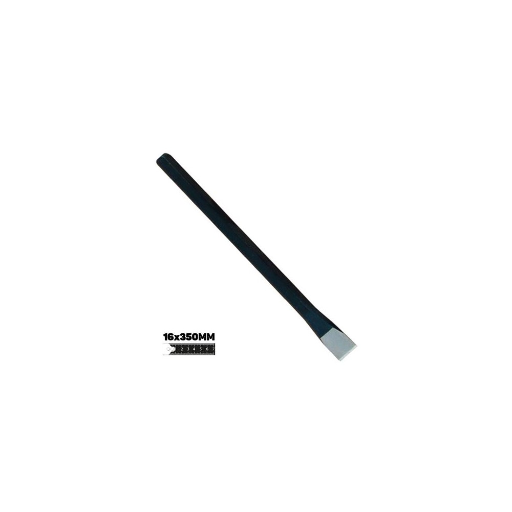 El producto es un objeto fabricado en acero al carbono de alta calidad, diseñado específicamente para resistir impactos. Ha sido sometido a un tratamiento térmico que le proporciona un endurecimiento fuerte, aumentando su resistencia y durabilidad. Sus medidas son de 16 x 350 mm, lo que lo hace adecuado para diversas aplicaciones.