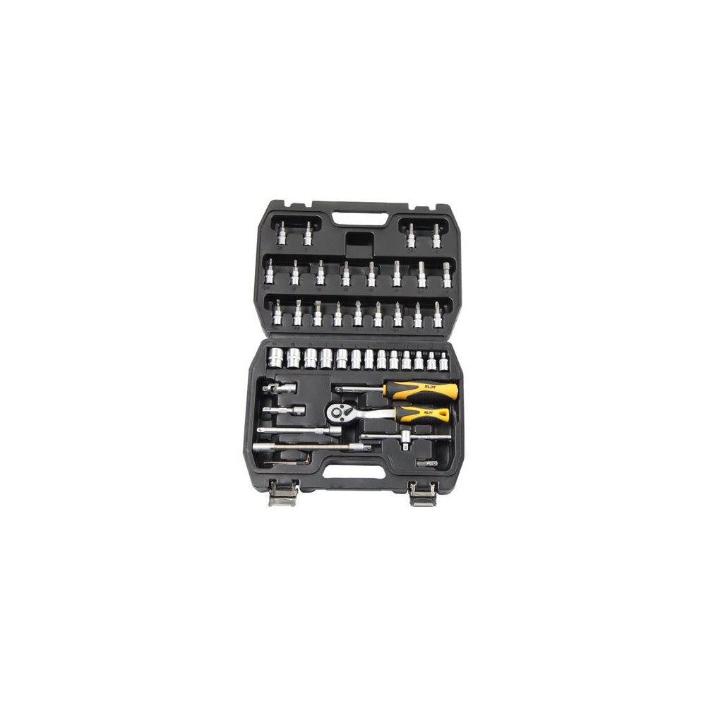 Blim Herramientas de 1/4 - Juego de Vasos y Accesorios - 13 Vasos: 4, 45, 5, 55, 6, 7, 8, 9, 10, 11, 12, 13, 14mm - Chicharra de