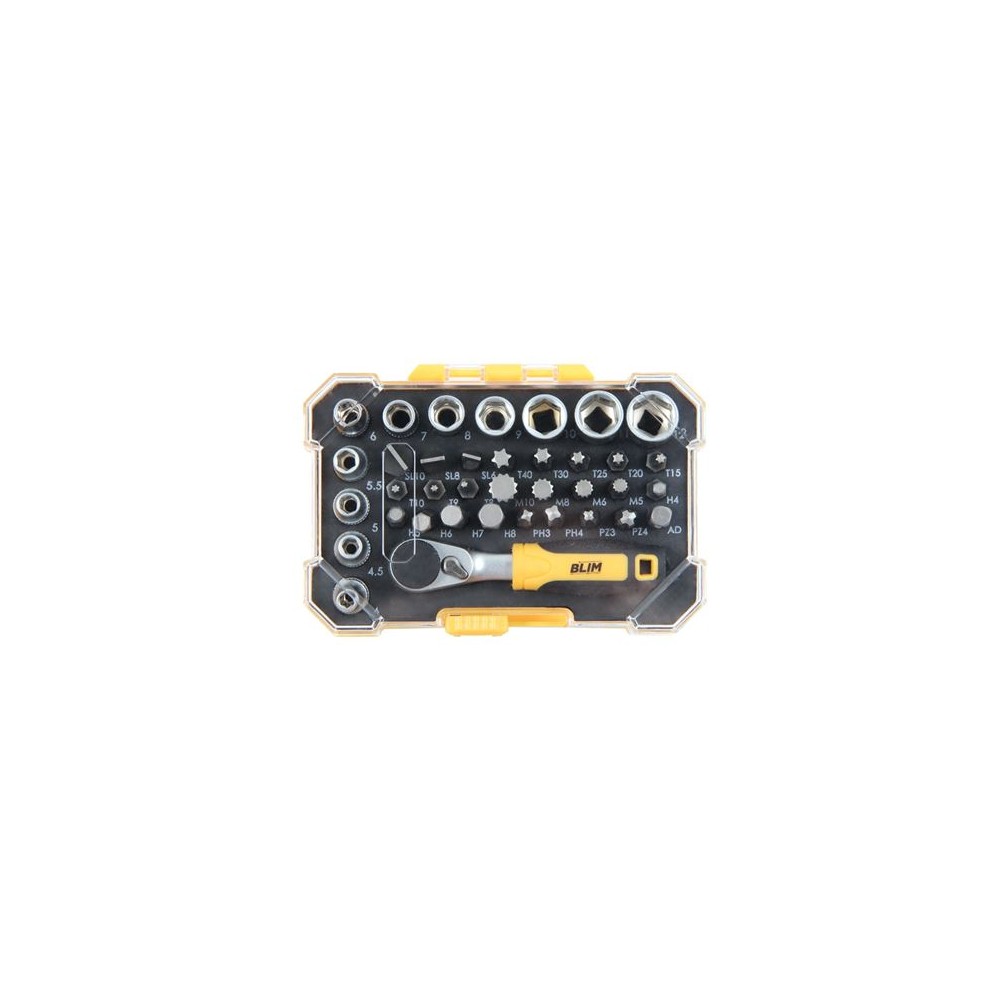 El conjunto de herramientas incluye una chicharra de 80mm de 1/4 con 72 dientes, que permite un ajuste preciso y rápido. También se incluyen vasos de diferentes tamaños, desde 4mm hasta 12mm, para adaptarse a una variedad de tuercas y tornillos. Además, se proporcionan puntas planas de 10mm, 8mm y 6mm, puntas Torx de T40 a T8, puntas de 12 cantos de 10mm a 5mm, puntas HEX de 4mm a 8mm, puntas PZ3 y PZ4, puntas PH3 y PH4, y un adaptador de 1/4 para mayor versatilidad. Este conjunto de herramientas es ideal para trabajos de reparación y mantenimiento en el hogar o en el lugar de trabajo.