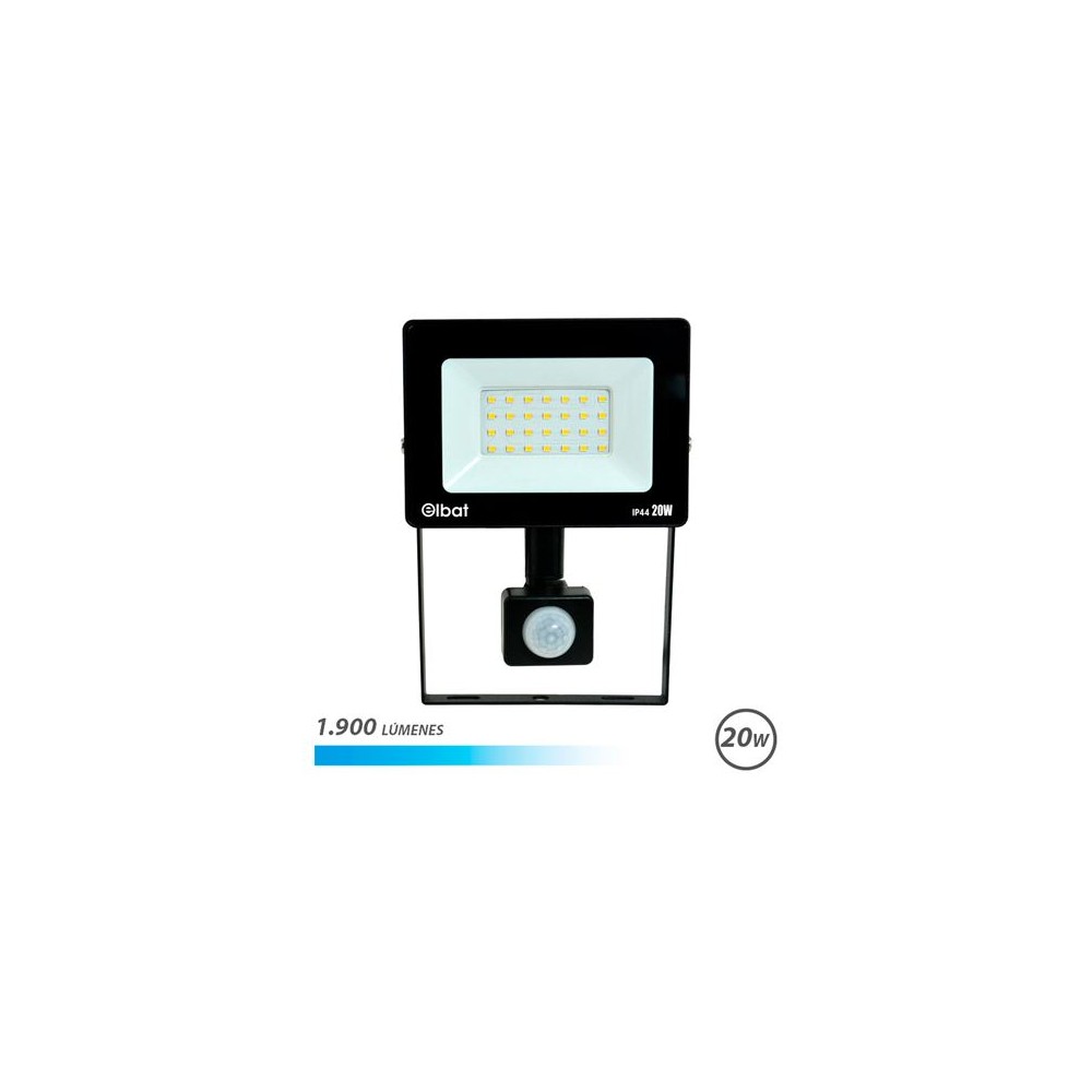 Elbat Foco LED con Sensor de Movimiento - Potencia: 20W - Lumenes: 1900 - Luz Fria 6.500K - Vida Util: 30.000 - 50.000 Horas - A