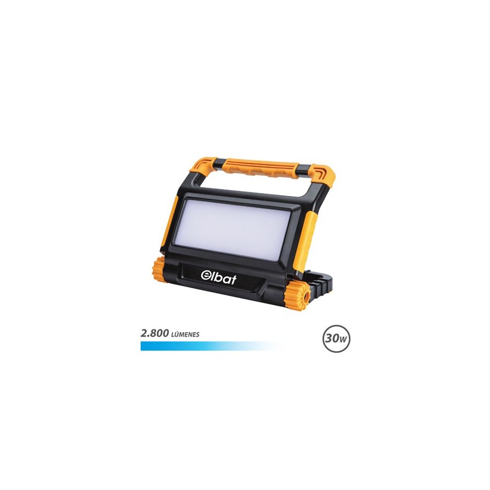 Elbat Foco Recargable 30W - Luz Fria, 6000K - 2800 Lumenes - Bateria 3.7V / 8000Mah - Recargable con Cable USB - Cable de Carga