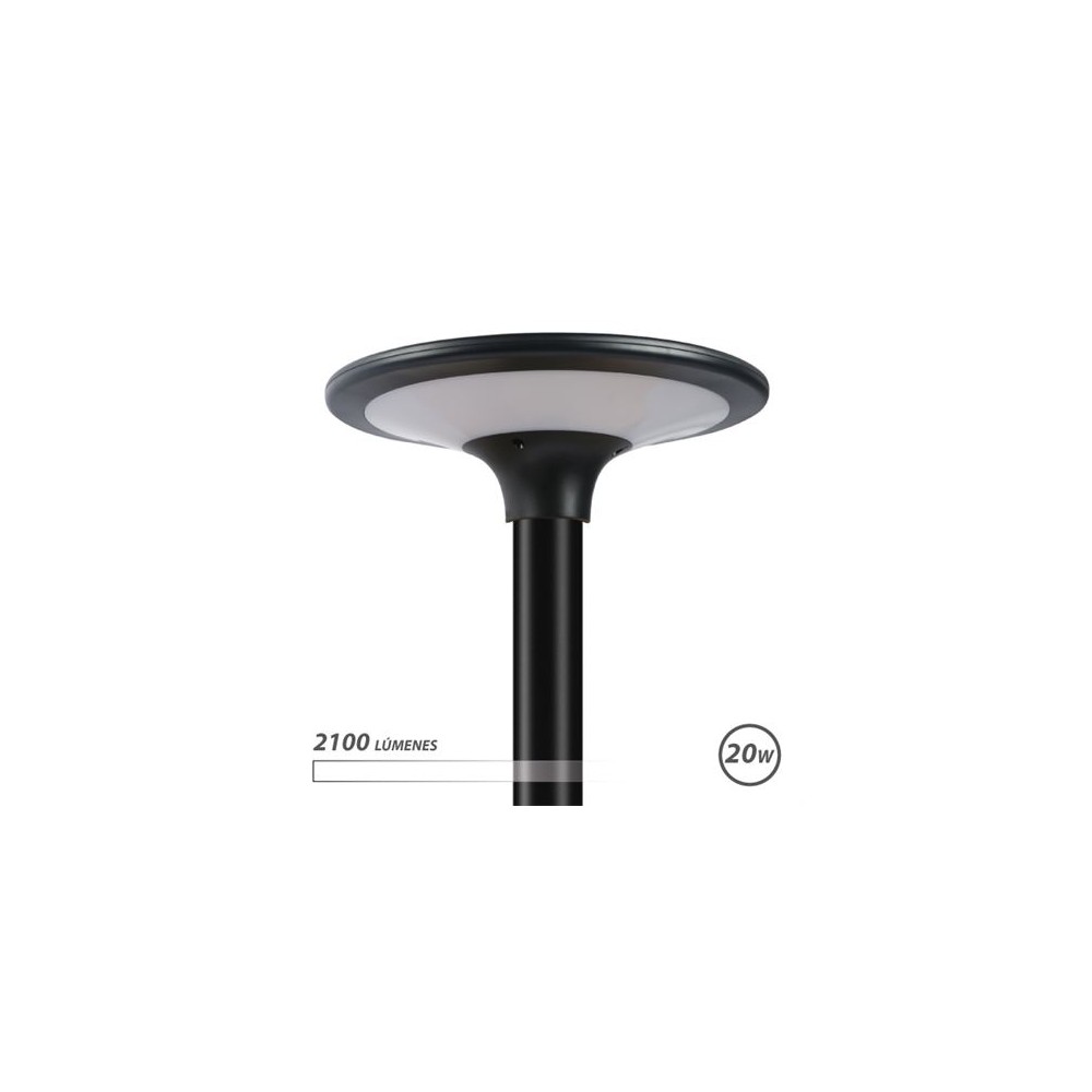 Se recomienda instalar la lámpara a una altura de 2 a 4 metros y dejar un espacio de 10 a 15 metros entre farolas. El ángulo de iluminación es de 360º, lo que permite una distribución uniforme de la luz. El diámetro interno para colocar el poste es de 50 a 60 mm, aunque el poste no está incluido.