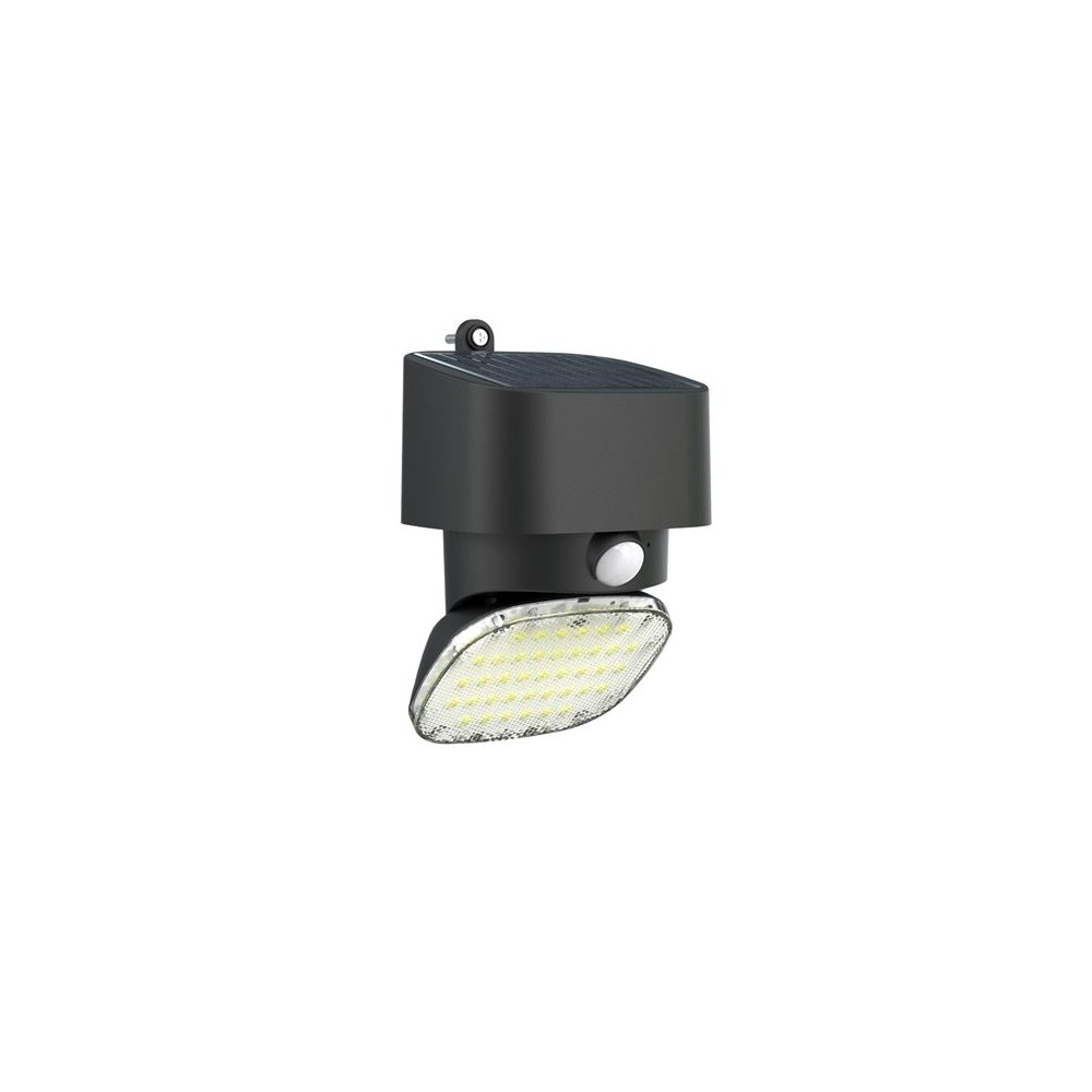 Elbat Foco Solar 2000LM - Luz Fria 6000K - Regulacion Vertical y Horizontal - Panel Solar 1W - IP65 - Color Negro