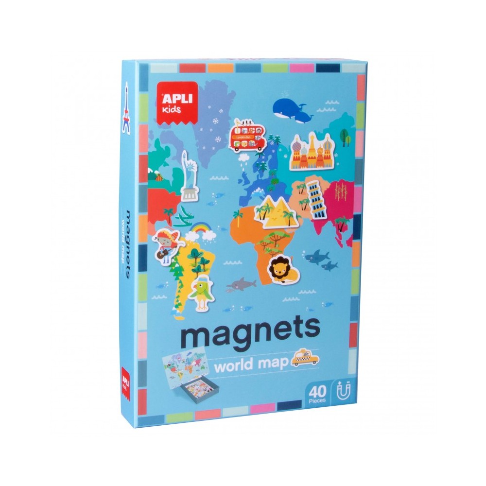 Apli Juego Magnetico Mapamundi - 1 Escenario Imantado 36 x 38 cm - 40 Fichas con Dibujos de Monumentos y Animales