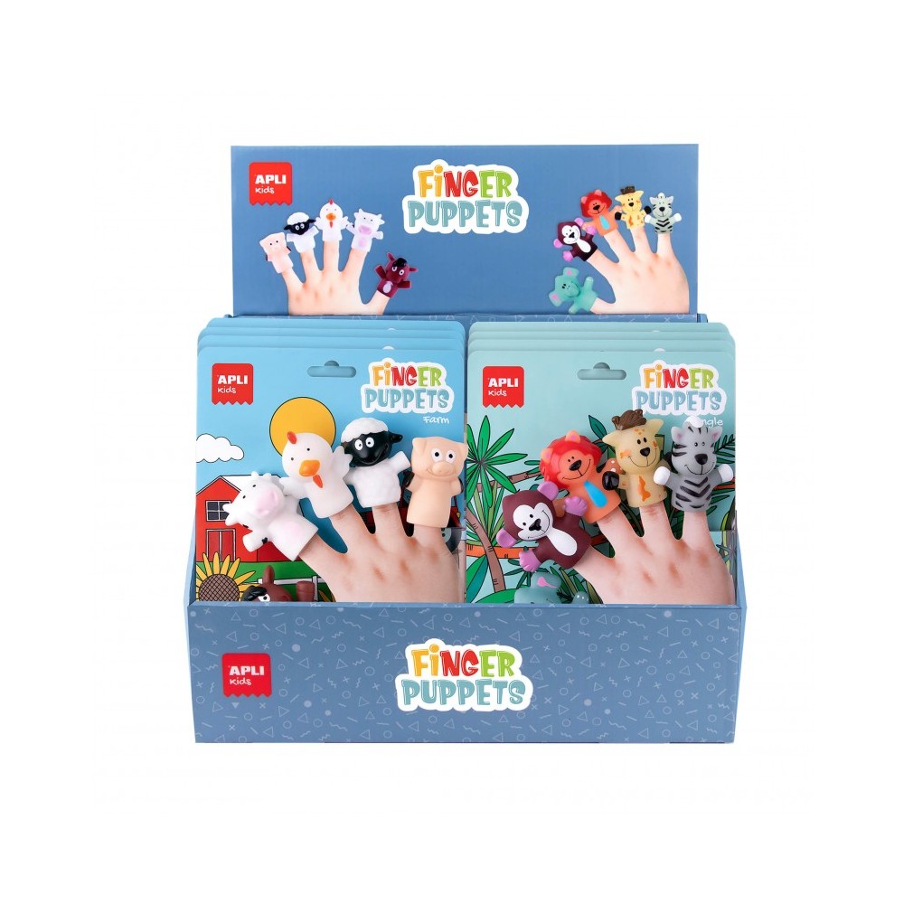 Apli Finger Puppets Expositor de 12 Packs de Marionetas para Dedos - Dos Diseños Disponibles