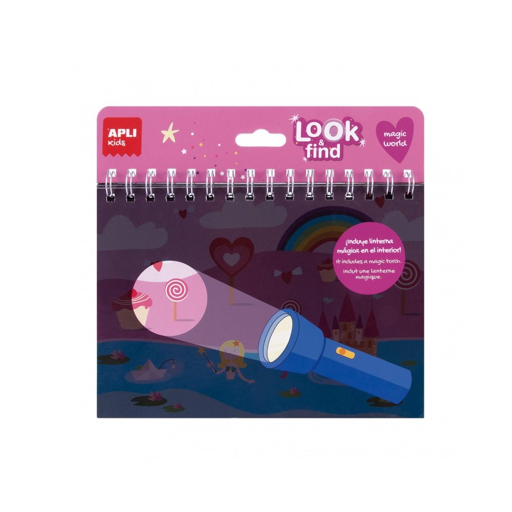 Apli Look & Find Mundo Magico Bloc de 6 Laminas para Buscar Objetos con Linterna Magica