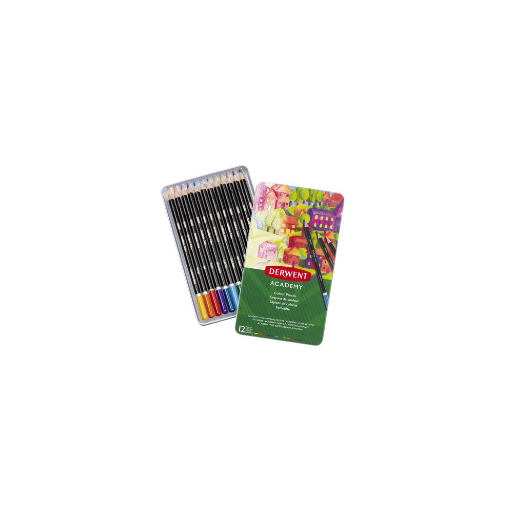 Derwent Academy Pack de 12 Lapices de Colores de Gran Calidad - Transferencia de Color Perfecta - Cuerpos de Madera Natural - Co