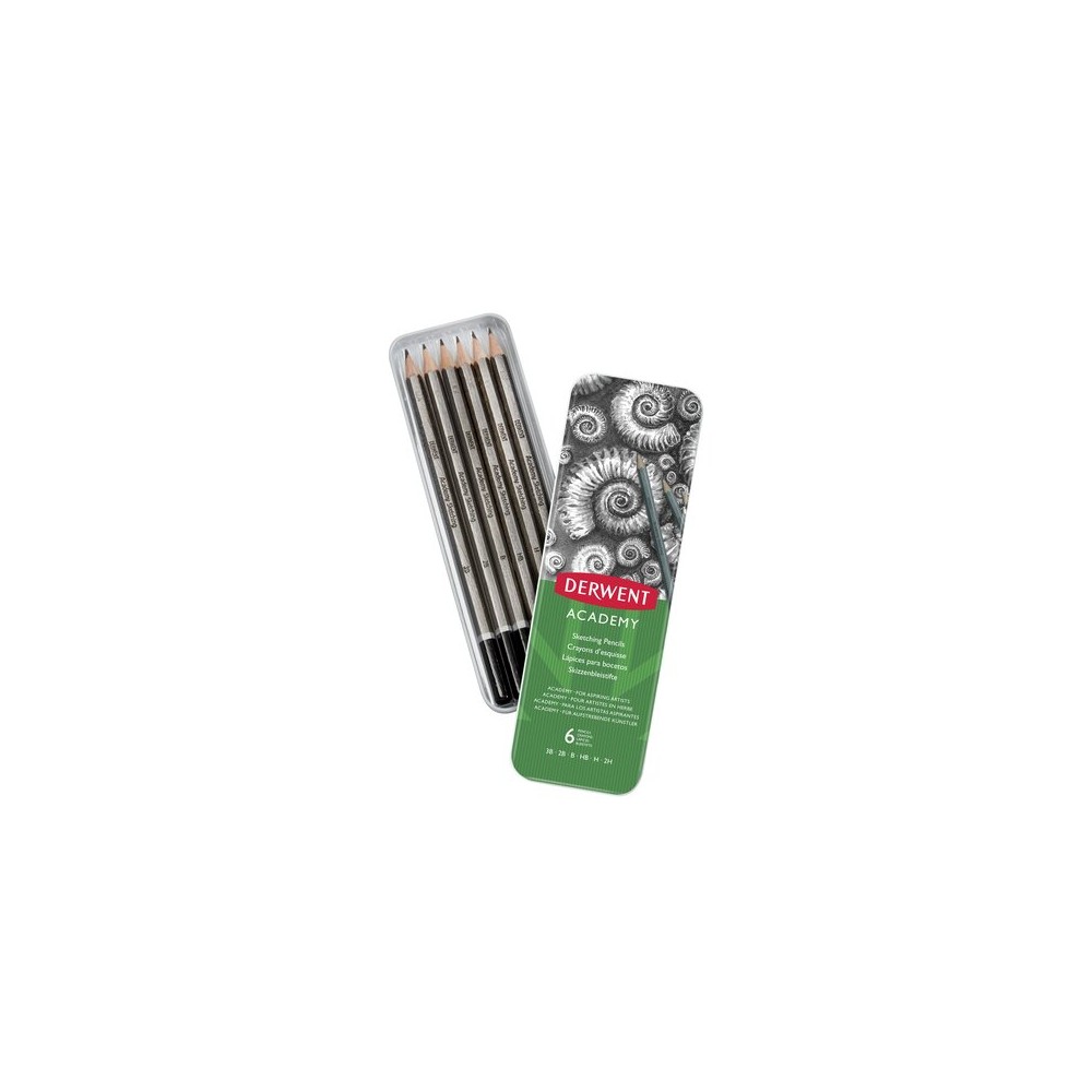 Derwent Academy Sketching Pack de 6 Lapices de Grafito Hexagonales de Durezas Surtidas - Especial para Bocetos - Cuerpos de Made