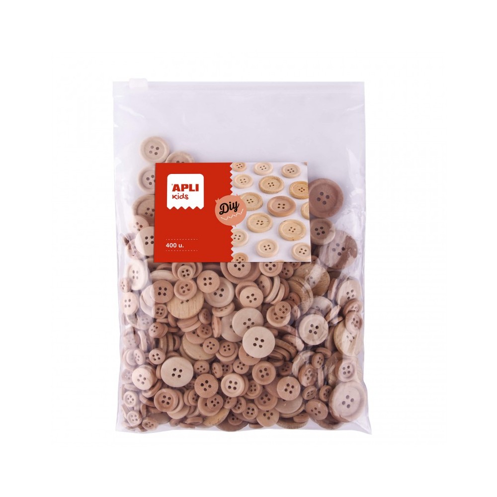 Apli Kids Bolsa de 400 Botones de Madera Natural - Tamaños 10mm, 15mm, 20mm, 25mm, 30mm