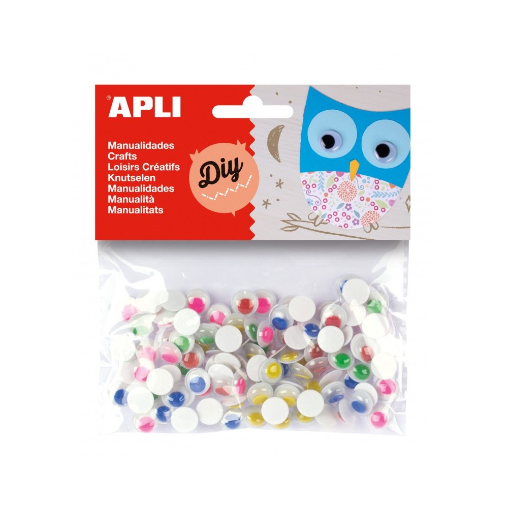Apli Pack de 100 Ojos Moviles Redondos Adhesivos - Medidas Surtidas Ø 10 mm - Colores Surtidos