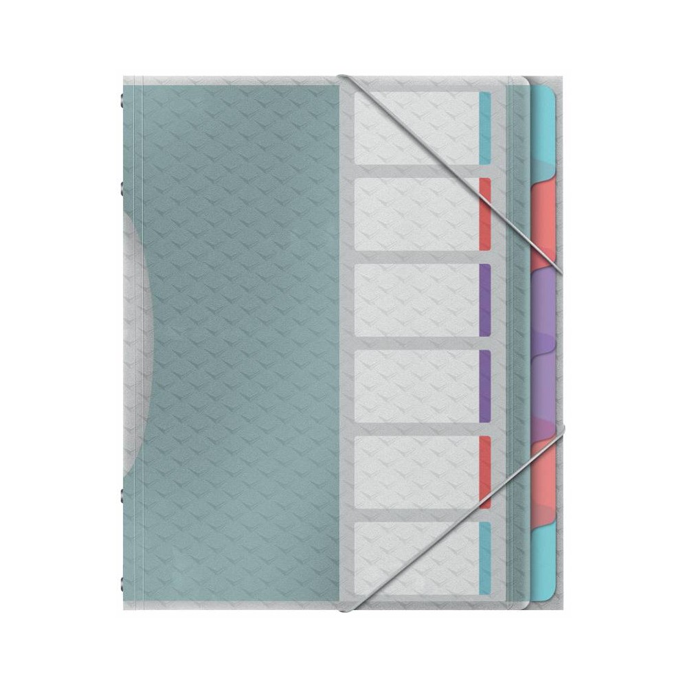 Adopta los colores vivos de la naturaleza para crear un espacio de trabajo positivo con la gama Colour\'Breeze de Esselte. Diseñado para mantenerte organizado y motivado mientras estudias o trabajas, el moderno acabado y los relajantes colores te harán soñar con tu próxima aventura. El clasificador Esselte Colour\'Breeze A4 es un organizador de documentos ligero que puede utilizarse para organizar proyectos y trabajos o para guardar los documentos de consulta frecuente. Este clasificador de secciones tiene 6 pestañas multicolores y una hoja frontal extraíble para que puedas identificar rápida y fácilmente cada pestaña. Dispone de 3 solapas en la tapa trasera para las notas sueltas y un cierre elástico fácil de usar que mantiene el contenido seguro durante los desplazamientos. Disponible en una selección de colores vibrantes y acabados con el fresco y moderno diseño en relieve de Colour\'Breeze. ¡Una brisa fresca en tu vida!