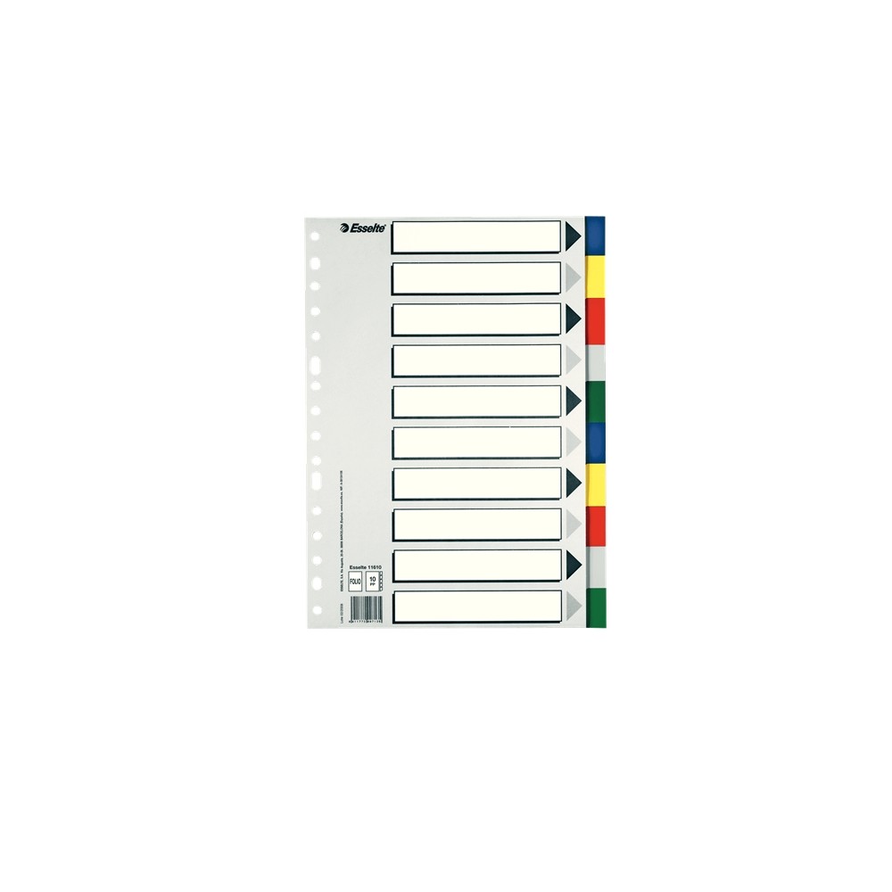 Esselte 713 Bolsa de 10 Separadores de Plastico - 10 Pestañas / 5 Colores - Multitaladro - Formato Folio