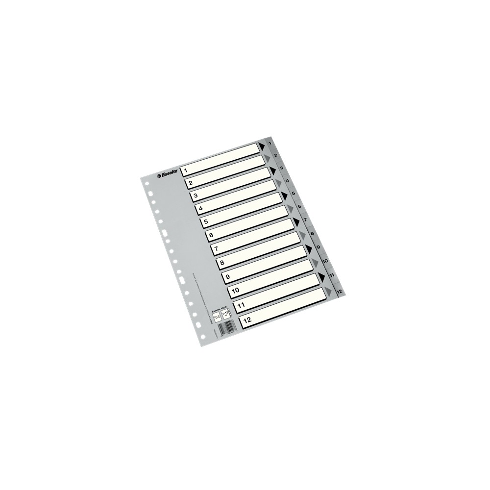Esselte Bolsa de 50 Indices Numericos de Plastico - Pestañas 1 al 12 - Multitaladro - Formato Folio - Color Gris