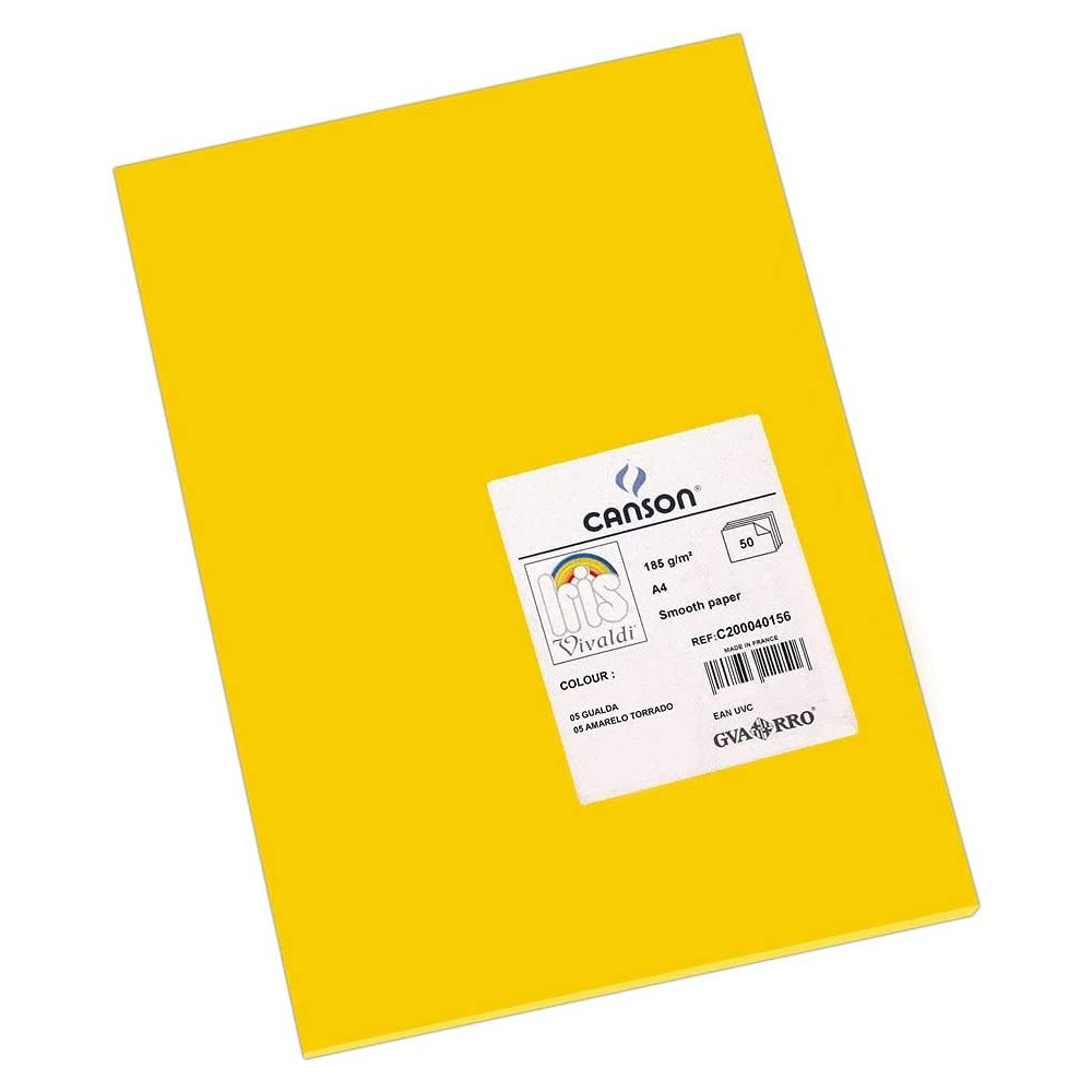Canson Guarro Pack de 50 Cartulinas Iris A4 de 185g - 21x29.7cm - Color Gualda