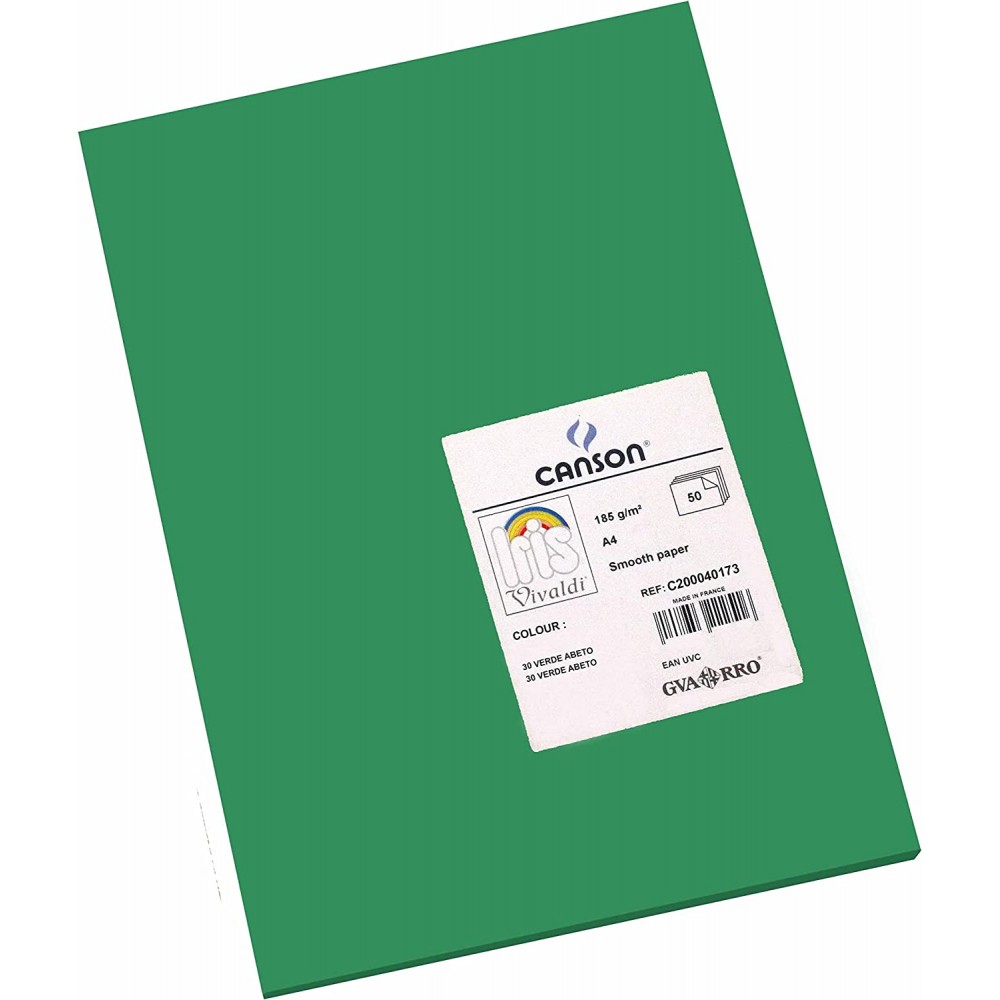 Canson Guarro Pack de 50 Cartulinas Iris A4 de 185g - 21x29.7cm - Color Verde Abeto