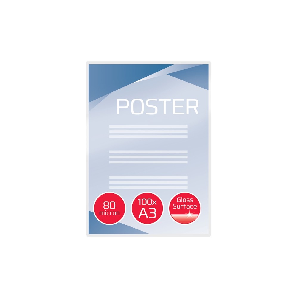 GBC Paquete de 100 Carteras Plastificacion A3 con Brillo - Alta Calidad - Esquinas Redondeadas - 80 Micras - Transparente