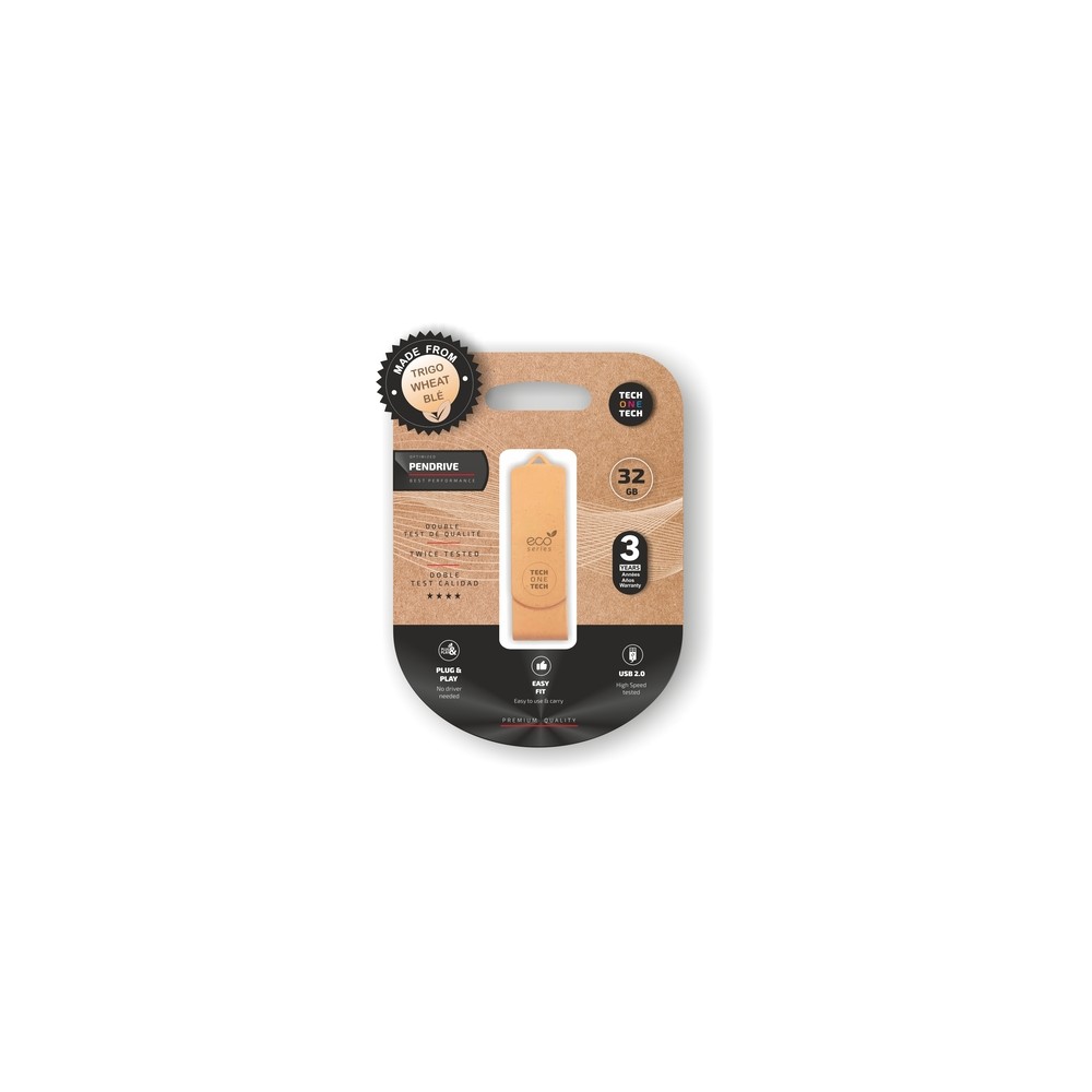 TechOneTech ecoTech Memoria USB 2.0 32GB (Pendrive) - Fabricado con Paja de Trigo