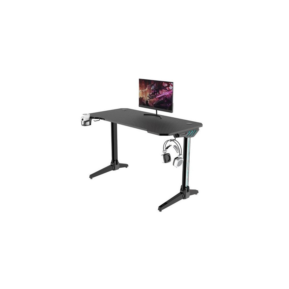 Muvip PRO600 Mesa Gaming Fibra de Carbono - Iluminacion RGB - Portavasos - Gancho para Auriculares - Patas con Lateral de Alumin