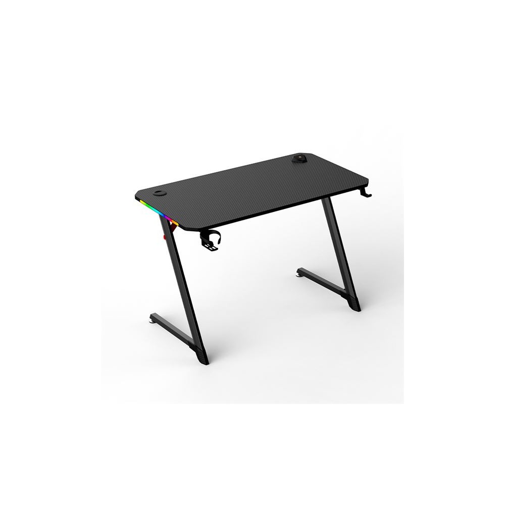 Muvip Mesa Gaming PRO1700 con Laminado de Fibra Carbono - Luz RGB - Portavasos y Gancho para Auriculares