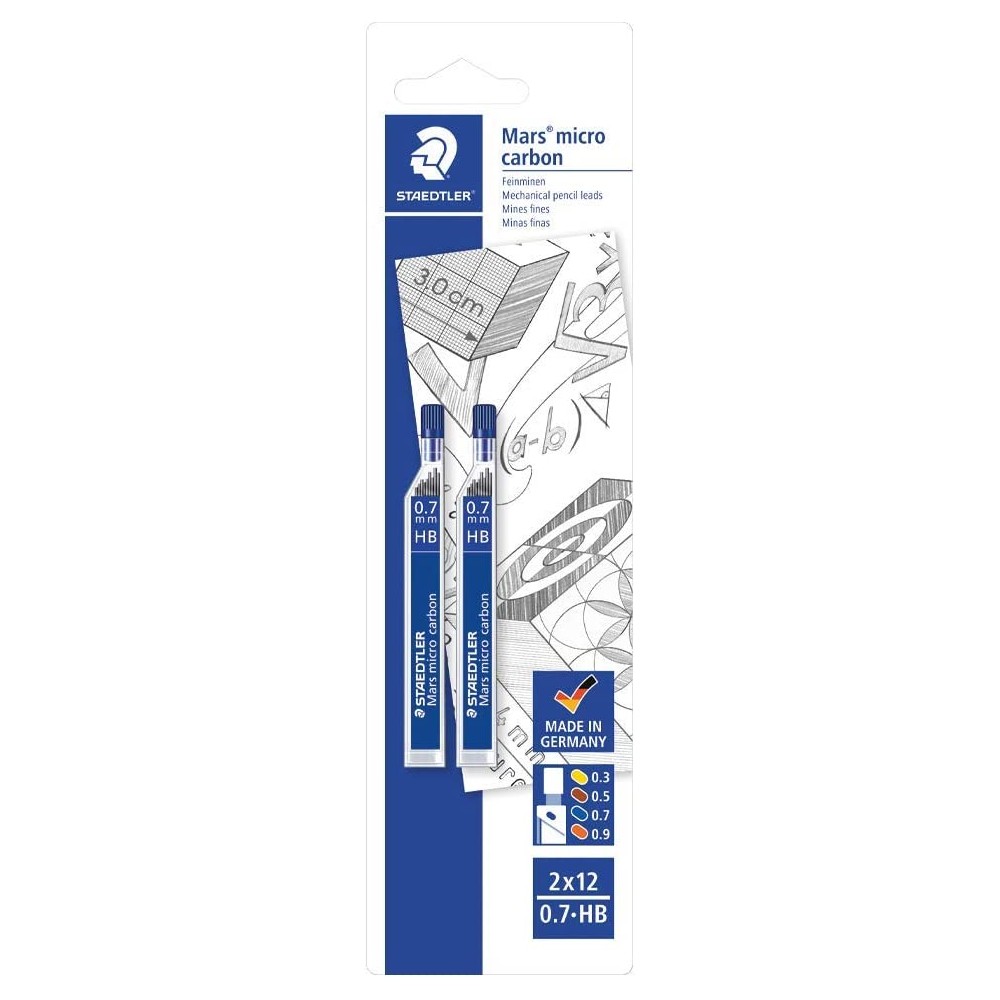 Staedtler Micro Carbon 250 Pack de 2 Tubos de 12 Minas - Mina HB de 0.7mm - Resistencia a la Rotura - 90% Procedente de Material