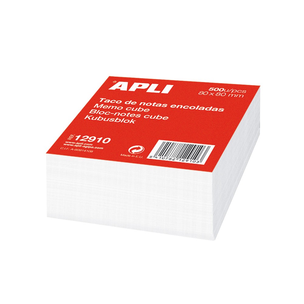 Apli Taco de Notas 80x80 - 500 Hojas - Adhesivo - Blanco